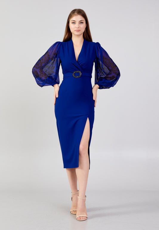 Blue midi dress with a slit