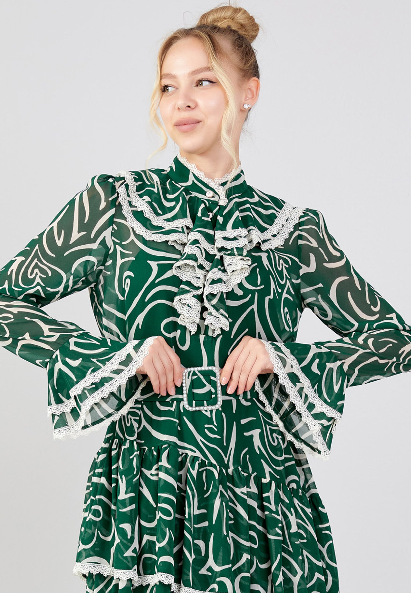Green and white summer dress